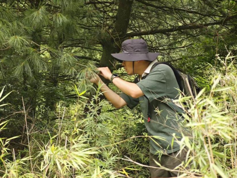 (队员实地调研土地岭廊道植被现状)