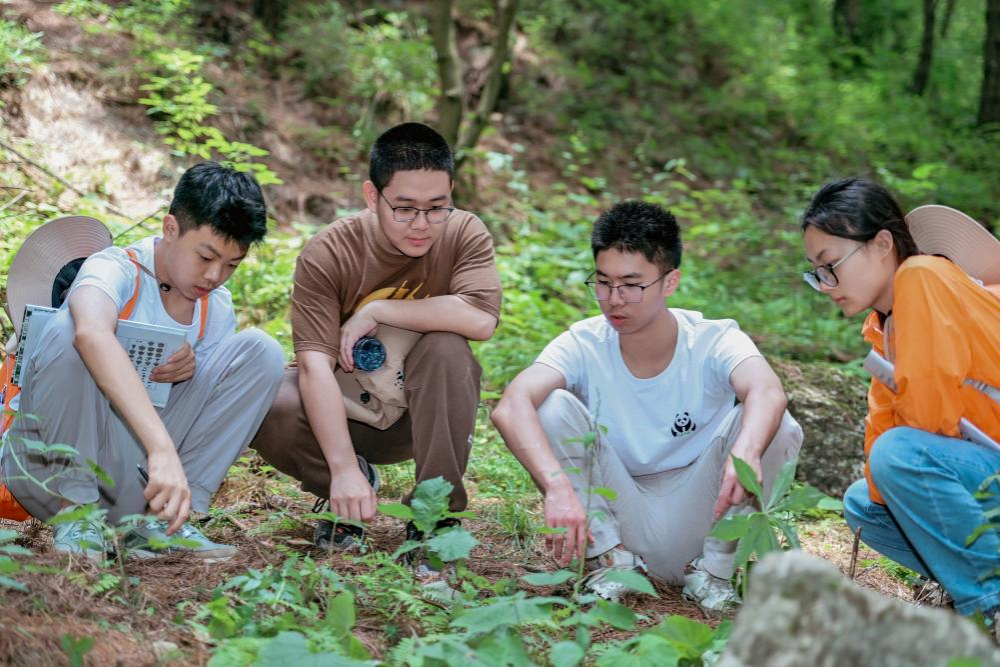 (队员带领参加自然教育夏令营的中学生进行调研)
