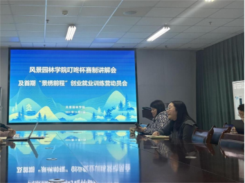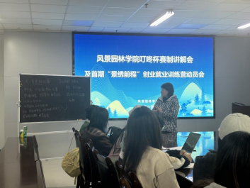 为深化创新创业教育,激发学生专业实践与职业规划能力,2025年11月11日,风景园林学院在第五教学楼530会议室成功举办“叮咚杯”空间美学挑战赛赛制讲解会及首期“景绣前程”创新创业训练营动员会。本次活动旨在通过“竞赛+训练”双驱模式,助力学子将空间美学专业知识与商业实践、生涯发展有机结合。
