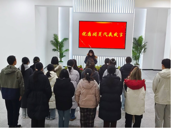 优秀团员代表陈彦希登台分享成长感悟与践行誓言的经历。其发言既是对新团员的榜样示范,也传递了共青团员忠诚担当、奋勇争先的精神内核,激励新团员以先进