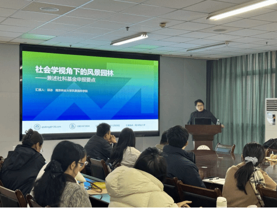 12月10日,风景园林学院在第五教学楼530会议室成功举办社科基金申报经验交流会。本次交流会特邀南京林业大学风景园林学院院长邱冰教授作专题报告,学院副院长姜贝贝教授主持,全院60余名师生参会交流。