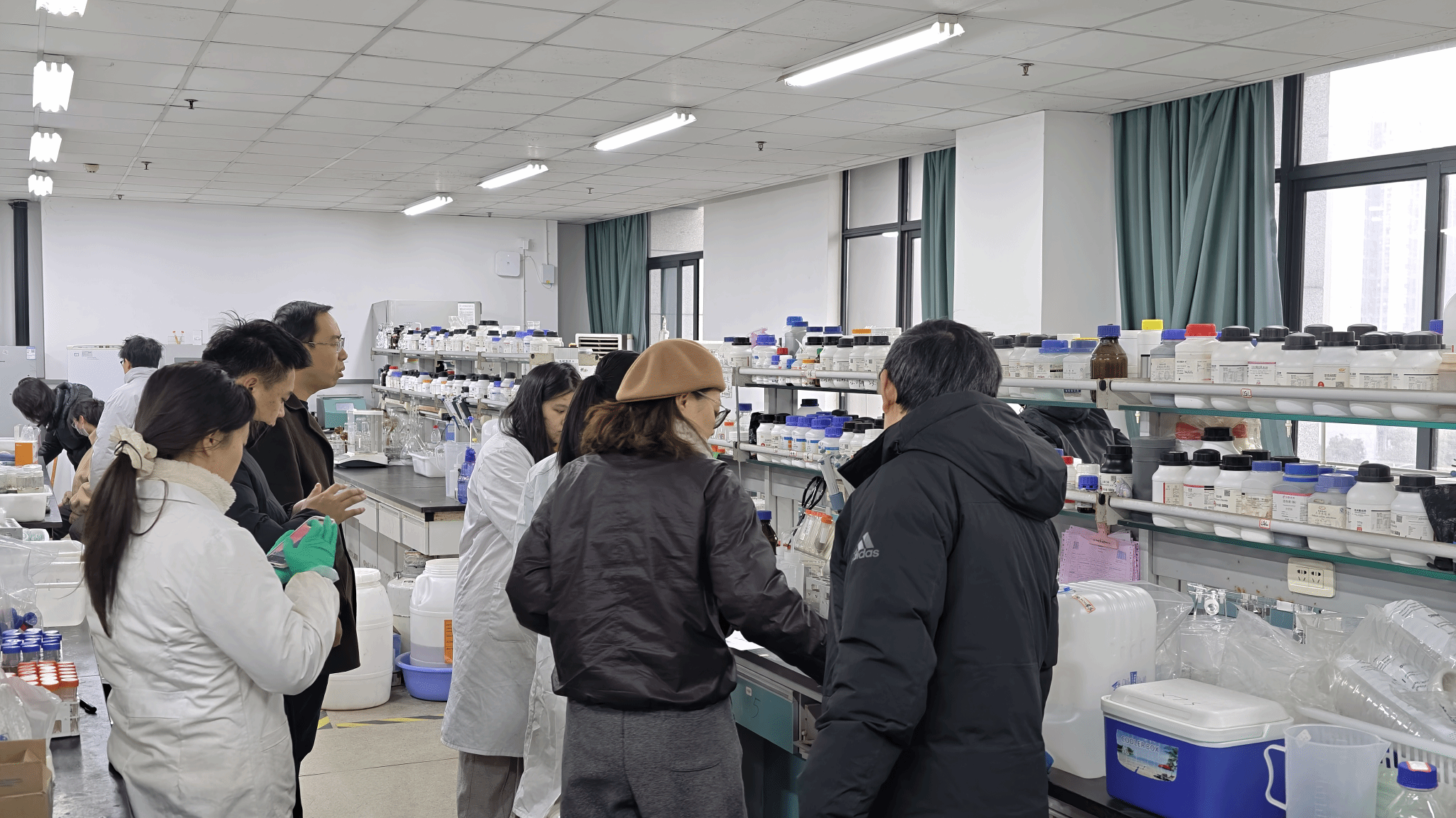 检查组一行深入各实验室一线,采取“实地查看、逐一核查”的方式,重点围绕高温高压设备运行及维护记录、化学危化品管理、水电线路敷设与管控、实验器材存放规范度等关键环节开展细致检查。同时,对实验室周边自习室的安全管理情况进行同步排查,重点核查自习室用电规范、消防通道畅通、物品堆放秩序等情况,全面排查各类安全隐患。