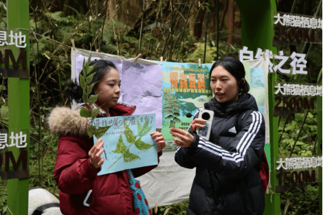 成果分享环节,各小组依次展示实践成果,并协作完成“自然笔记”拼贴创作。活动最后,团队前往清平镇党群活动中心,围绕大熊猫国家公园保护成效与社区共建机制展开深入交流。