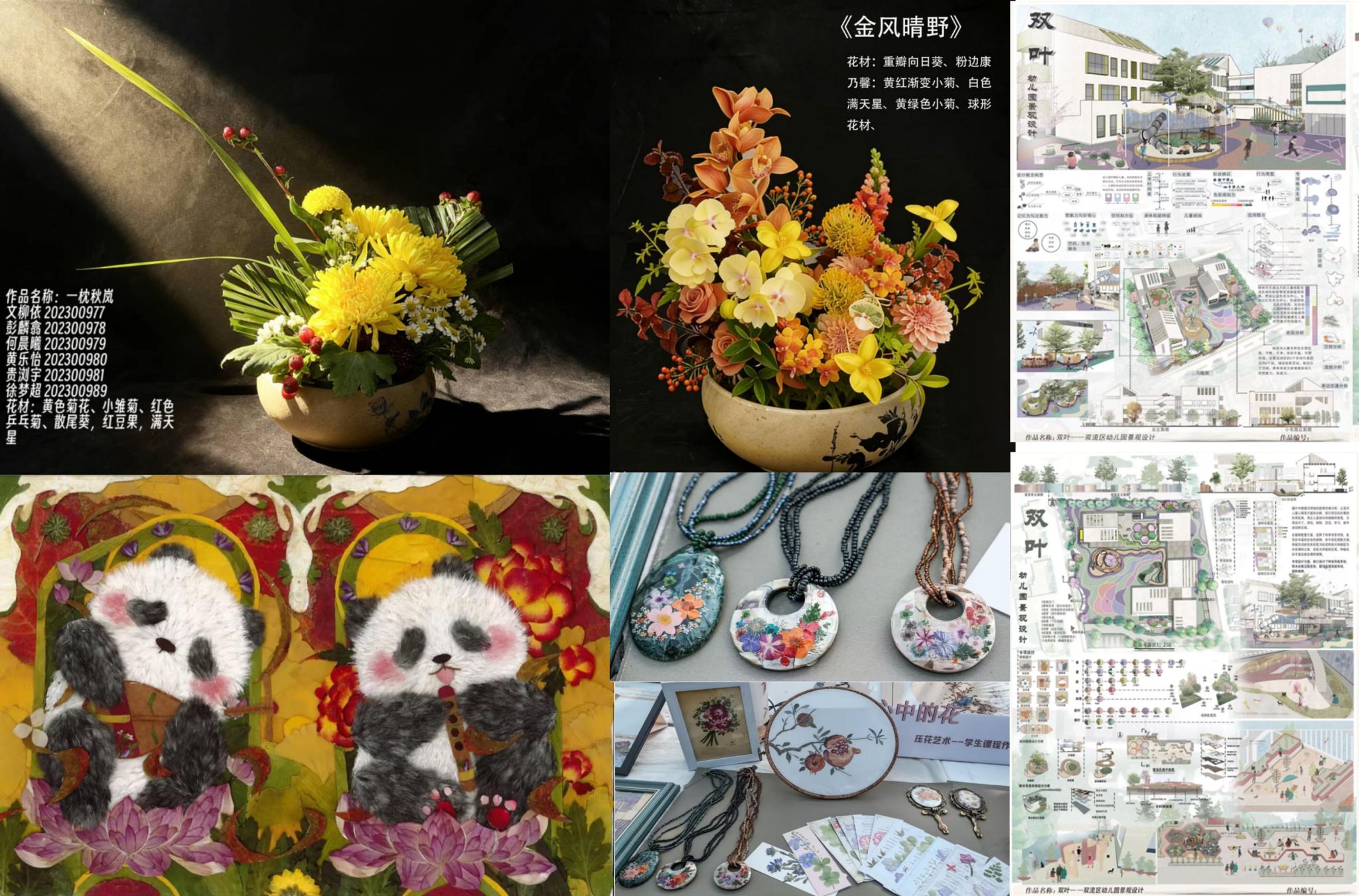 同学们的插花、压花作品和文创作品
