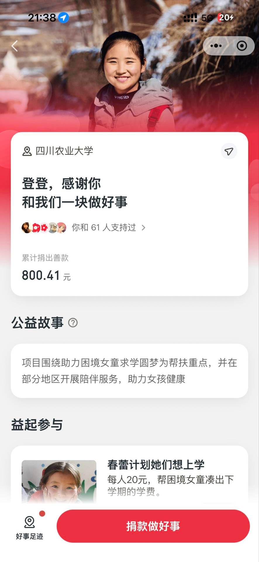 经统计,本次雷锋日义卖公益活动累计募集善款800.41元,所有善款将全额捐赠至中国儿童少年基金会“春蕾计划”,用于帮助困境女童改善学习条件、助力求学圆梦,以微光汇聚星河,用爱心守护希望。